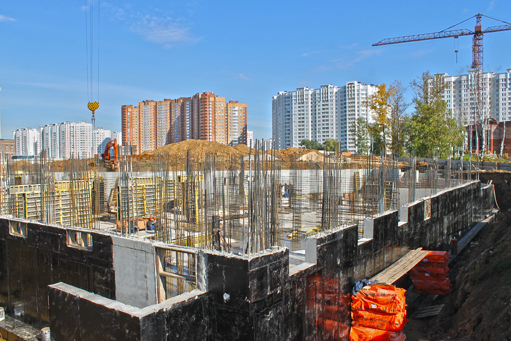 В комплексе на территории Подольска началось армирование стен внутри подполья и производится утепление внешних стен. Также началось обустройство прижимной стены и сборка опалубки. Продолжается устройство дренажа.