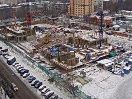 На текущий момент на стройплощадке комплекса на 100% выполнены работы по устройству монолитных конструкций, завершаются работы по отделке фасадов.