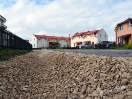 В жилом комплексе продолжаются активные работы по обустройству дорог на территории I очереди. На той части дорог, где уже выполнена укладка асфальта, начались работы по укреплению обочин и канав, включающие отсыпку известнякового щебня. Это позволит остановить рост сорняков, а также придать внешнему облику жилого комплекса законченный вид.